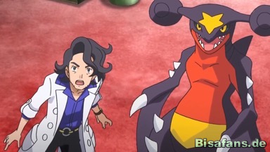 Alain seilt sich – zum Ersetzen von Michaela – vom Hubschrauber ab und läuft zu Mega-Glurak X, um die Eisbrocken von seinem Pokémon zu räumen. Dies gelingt ihm auch, doch muss er feststellen, dass das Pokémon vollkommen entkräftet ist, weshalb er es in seinen Pokéball zurückruft.