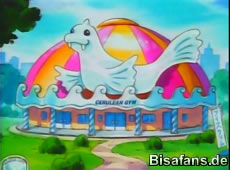 Nun schickt Ash sein Tauboga in den Kampf. Misty reagiert und wechselt ihr Sterndu zu einem Starmie. Taubogas Windstoß verpufft wirkungslos als Starmie ins Wasser abtaucht. Als Ash Tauboga einen Flügelschlag befiehlt und dieser auch erfolgreich ausgeführt werden kann, wird Starmie gegen eine Wand geschleudert und ist sehr schwer angeschlagen. Bevor der Kampf jedoch beendet werden kann taucht mal wieder Team Rocket auf…