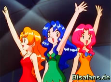 Rocko muß in der Stadt noch etwas erledigen, so daß er sich von Ash trennt. Ash findet unterdessen die Azuria Arena, die einem Wasser-Stadion gleicht. Zur Zeit findet dort eine Vorführung mit drei Mädchen statt. Wie Ash gleich herausfindet, handelt es sich bei den drei Mädchen um die "Bezaubernden Schwestern", die auch gleichzeitig die Arenaleiter sind.
