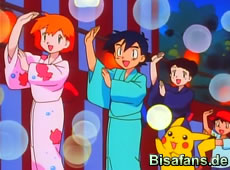 Nachts bringen alle Schutzmaßnahmen jedoch nichts, als der Geist in die Hütte eindringt und Rocko und James wieder in seinen Bann zieht. Diesmal geben unsere Freunde jedoch nicht so schnell auf und Jessie jagd dem Geist eine Rakete in den Bauch, während Ash seinen Pokedex benutzt und rausfindet, daß es sich hierbei um ein Nebulak handelt! Jetzt, wo das Nebulak enttarnt ist, gibt es sich auch zu erkennen und gesteht, daß er die Schönheit am Hafen wie auch die alte Frau gewesen ist. Als es zum Pokémonkampf gegen das Nebulak kommt, setzten Ash und Team Rocket alle ihre Pokémon ein - allerdings werden sie stets von den Illusionen des Nebulak besiegt. Erst als die Glocke schlägt verabschiedet sich Nebulak bis zum nächsten Sommerfest und bittet alle sich an die Geschichte der Schönheit zu erinnern. Unsere Freunde wissen es nicht, doch das Nebulak handelte damit im Auftrag der Schönheit, die tatsächlich bis heute auf ihren Geliebten wartet.