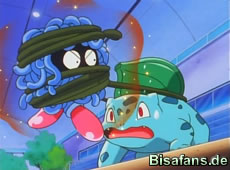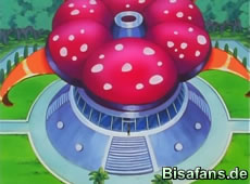 Erika erzählt auch einiges über Duflor. So stinken Duflors nur dann, wenn sie sich in Gefahr befinden. Erikas Freundschaft zu ihrem Duflor begann in ihrer Kindheit, als ein Duflor sie einmal vor einem Sleima rettete. Als Misty erwähnt, daß Ash diese rührende Geschichte hören sollte, verplappert sich Ashley. Nach einem Donnerschock Pikachus fliegt die Tarnung von Ash auf und er ist geoutet. Die Gelegenheit für Ash nun Erika herauszufordern. Sie nimmt an und es kommt zu einem 3vs3 Arena Kampf: