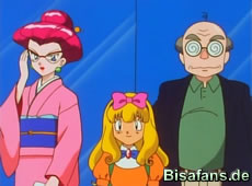 In dieser Verkleidung geht es auf in die Arena, wo Jessie und James als Eltern der kleinen Ashley auftreten, die in der Arena aufgenommen werden will. Bei der Frage ob Ashley Parfüm mag lügt Ashley mit einem "Ja". Jessie und James verschwinden schnell in den Gängen der Arena, während Ashley in den Hof geführt wird, wo auch Rocko, Misty und die Areanleiterin Erika sind. Die Arenaleiterin ist übrigens auch die Besitzerin des Parfümladens, die Ash vor kurzem noch beleidigt hatte… Erika unterrichtet gerade ihre Schülerinnen mit einer Geschichte von Amonitas, als Ashley hereingeführt wird.
