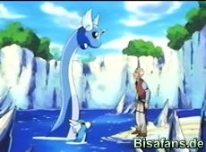 Alle sehen staunend das Dragonir an. das Dratini aus den Jugendjahren des Wärters hatte sich also zu einem Dragonir weiterentwickelt. Der Wärter dankt Ash ganz herzlich und auch dieser Tag ist wieder gerettet.