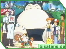 Happy End? Ja, für Ash, Rocko und Misty wird ein Festmahl angerichtet. Team Rocket versucht hingegen weiterhin ihr Glück ein Relaxo zu fangen. In dem Wald gibt es offenbar mehrere davon und der Hippie kümmert sich um diese. Daß Team Rocket hierbei chancenlos bleibt ist ja keine Frage.