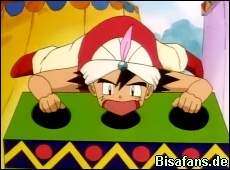 Da kann die Show ja beginnen. Auch Ash und Rocko besuchen die Vorstellung, was Misty ein wenig peinlich ist. Doch dann geht es los, Melvin versucht einige Zaubertricks, welche aber alle in die Hose gehen. Sogar der letzte Trick, als er aus seinem Stab eine Feuerwand erscheinen lassen will. Bei diesem Versuch verbrennt er fast die wenigen Zuschauer und fast auch noch das Zelt. Nun ist er seinen Job los, doch so kann er seinen Traum, dass er eines Tages als grosser Zauberer nach Las Vegas kommt, nicht verwirklichen. Deshalb beschliessen unsere Freunde ihm noch mal zu helfen.