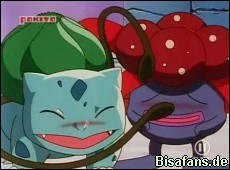 Bisasam riecht an allen möglichen Pflanzen. Es ist sehr angezogen vom Duft und dann wird es auch noch von Ash angezogen. Denn es hat an einer Pokénip Pflanze gerochen, sie hat eine berauschende Wirkung auf Pokémon. Bisasam geht zur nächsten Pflanze und riecht daran, doch plötzlich fällt es zusammen und es kann sich nicht mehr bewegen. Ash möchte auch an der Pflanze riechen um herauszufinden was es ist. Aber da ruft ihm ein Mädchen zu, dass er ja nicht an der Pflanze riechen soll. Das Mädchen ist Florinda, ihr gehört das Treibhaus. Sie sagt es ist Betäubungskraut und es wirkt genau so wie Stachelsporen. Da Bisasam daran gerochen hat, ist Ash verzweifelt. Aber auch da weiss das Mädchen Rat. Sie lässt ihr Duflor Bisasam ins Haus tragen. Was mit ein wenig Unterstützung von Ash auch klappt.