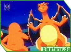 Der Kampf beginnt bereits sehr merkwürdig. Anstatt seinen Flammenwurf oder eine andere Feuerattacke einzusetzen, wirbelt Glurak ein wenig mit seinen Flügeln bis Sparky umfällt. Als Glurak jedoch Sparky nicht als würdigen Gegner empfindet, legt er sich einfach hin und ruht sich aus! Eine Katastrophe und Blamage für Ash, der nun den Kampf verliert, weil Glurak nicht kämpfen mag…