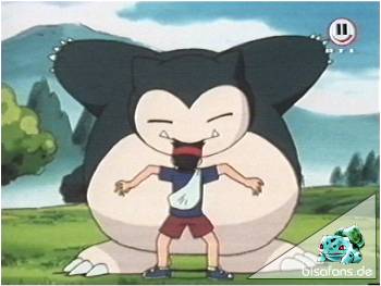 Also bleibt unseren Freunden nichts anderes übrig, als sich als Nahrung zu verkleiden. Ash bekommt ein schickes Apfel-Kostüm und soll damit Relaxo über den Berg locken. Doch dies klappt besser als erwartet und Relaxo schafft es Ash einzuholen. Glücklicherweise schmeckte Ash als Apfel nicht so gut, so daß ihm nichts passiert.