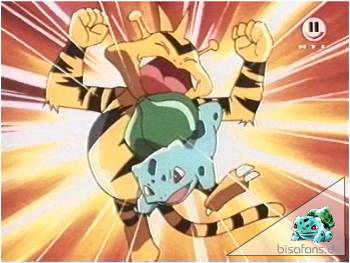 Doch der nächste Gegner läßt nicht lange auf sich warten: Elektek sieht nicht nur stark aus, es ist auch auf einem sehr hohen Level. Ash kontert mit seinem Bisasam. Doch Bisasam hat leider kaum eine Chance gegen den mächtigen Elektek und muß sich sehr schnell geschlagen geben. Als Ersatz schickt Ash nun Glurak rein. Dieser macht mit Elektek kurzen Prozess, indem er es per Geowurf K.O. setzt. Bleibt nur noch das 6. und letzte Pokémon, das Ash vom Orange Liga-Pokal trennt.