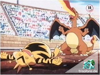 Schiggy tritt kurz gegen Dragoran an und kann auch einige Attacken durchsetzten. Doch auch Schiggy muß nach nur wenigen Sekunden den Kampf aufgeben. Ash gehen jetzt wirklich die Pokémon aus. Wenn Pikachu Dragoran jetzt nicht besiegt, kann Ash den Pokal vergessen.