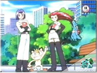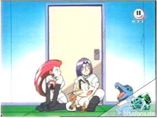Bisasam hält Team Rocket mit seinem Rankenhieb von der Flucht ab.