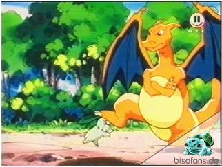 Rankenhieb gefesselt hat und Glurak damit ins Stolpern bringt...