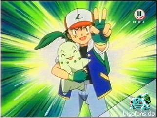 Tackle-Attacke von Bisasam versucht Ash das Endivie zu fangen, doch