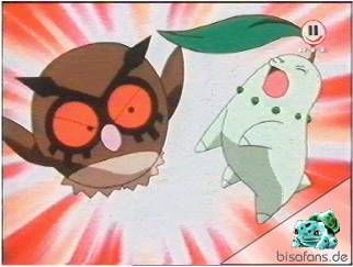 Rankenhieb-Attacken von Endivie, die Hoothoot jedoch nicht einmal