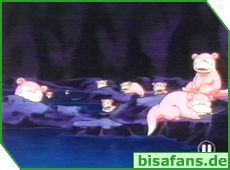 Team Rocket wird durch die plötzlichen Wassermassen unter der Erde herausgeschleudert, wo sie Ash auch mit seinem Pikachu erwartet. Ein weiterer Schuß in den Ofen für Team Rocket.