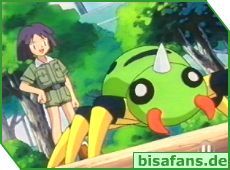Kurz darauf treffen unsere Freunde auch bei der Arena ein. Diese sieht wie ein großes Gewächshaus aus und Misty ahnt schon schlimmes. Wie gut ihre Vorahnung war merkt sie, als lauter Raupy und Safcon um sie herum auftauchen und Misty kreischend davonläuft. Dabei entdecken alle auch den Arenaleiter Kai, wie er auf einem Baum sitzt. Klar, dass Ash ihn direkt herausfordert. Kai freut sich und nimmt die Herausforderung an. Allerdings wird man das Gefühl nicht los, dass Kai ziemlich eingebildet und extrem vernarrt in KäferPokémon ist.