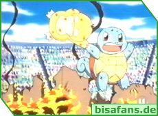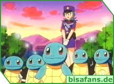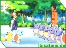 Für Ash und seine Pokémon heißt dies jedoch auch Abschied nehmen, denn Schiggy bleibt nun bei seiner Gang. Am freundlichsten verabschiedet sich Schiggy von seinem besten Freund Bisasam. Und man merkt, dass allen der Abschied nicht leicht fällt. Für Ash wird es jetzt auf jeden Fall schwerer, da er nun kein Wasser-Pokémon mehr hat.