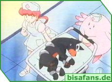 Die Hunduster sagen Ash, dass sie sich um Team Rocket kümmern und Ash inzwischen zum Pokémon Center gehen soll. Gesagt, getan, und die Hunduster heizen Team Rocket mächtig ein.