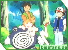 Bisasam setzt inzwischen eine Rasierblatt-Attacke ein, woraufhin Quapsel fast K.O. geht und sich dadurch zu Quaputzi weiterentwickelt! Ash befieht ein Tackle, Mist ein Bodyslam. Bisasam benutzt wieder das Rasierblatt, hat jedoch schwer an Quaputzi zu beißen. Ash befiehlt einen Solarstrahl, während Quaputzi die Ladezeit für seinen Blubber nutzt. Obwohl Bisasam unter dem Blubber-Beschuß stand, kann er seinen Solarstrahl starten und sorgt damit für den Sieg von Ash!