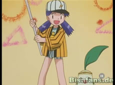 Ash jagt unterdessen immer noch dem Sichlor hinterher, als er von einem Bibor-Schwarm angegriffen wird. Mit Hilfe von Pikachus Donnerblitz kann er sogar ein Bibor fangen. Doch bevor er sich darüber freuen kann, landet er in einer Fallgrube von Team Rocket und droht mit Hilfe des Rocket-Ballons verschleppt zu werden.