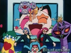 Jessie und James schicken Arbok und Sarzenia in den Kampf und befehlen eine Rasierblatt-Attacke, während Vulpix und Vulnona mit Feuerattacken kontern. Beim kombinierten und mächtigen Feuerwirbel muß Team Rocket mal wieder abhauen.