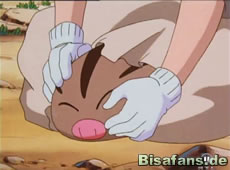 Unsere Freunden konnten inzwischen mit Hilfe Noctuhs die Quiekel und Team Rocket wiederfinden. Es kommt wie es kommen muß – zu einem Kampf. Ass setzt Karnimani ein, Misty Quaputzi und Peggys Vater sein Georok, während Jessie und James Arbok und Sarzenia verwendent. Als Sarzenia und Arbok zu verlieren drohen, werden auch Smogmog und Woingenau eingesetzt. Gerade als unsere Freunde auch Verstärkung schicken wollen, werden die Quiekel richtig sauer. Die Pulverschnee-Attacke läßt Team Rocket komplett einfrieren, bevor es mit einer gemeinsamen Aquaknarre von Karnimani und Quaputzi Team Rocket endgültig verjagd.