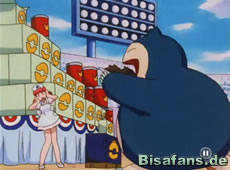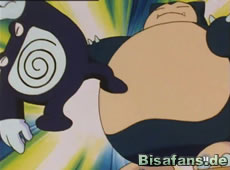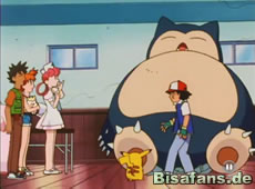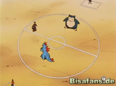 Anschließend kämpfen Impergator und Geowaz. Mit Hilfe einer geschickten Taktik kann Impergator das wesentlich schwerere Geowaz besiegen. Ash tritt etwas später mit Relaxo gegen ein Quappo an. Als Quappo angreift, prallt es jedoch von Relaxo ab und geht K.O. Als Relaxo aber anschließend zum Pokémon Futter stürmt, muß Ash es schnell in den Pokeball zurückrufen.