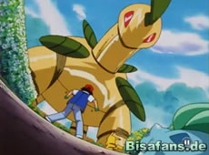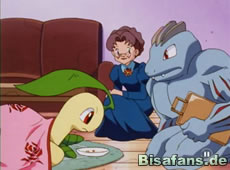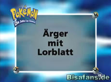 Ash, Rocko und Misty haben inzwischen das Haus der alten Frau gefunden. Doch als Ash sich dem Lorblatt nähert, schubst ihn ein Hubelupf. Nach einer Begrüßung durch die Frau darf Ash aber das Grundstück betreten. Das eigentliche Problem ist jedoch Lorblatt, welches sauer auf Ash ist. Es lehnt sogar eine Entschuldigung von Ash ab!