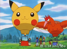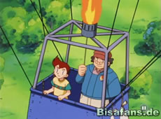 Skyler führt Ash, Misty und Rocko zu seinem Haus wo er mit seinem Vater arbeitet. Dieser entwirft nämlich Heißluftballons, die wie Pokémon aussehen. Besonders interessant wird es, als wir erfahren, daß morgen ein Wettbewerb stattfindet, bei dem man innerhalb einer bestimmten Zeit einen Gegenstand in diese Markierung auf der Wiese abwerfen muß. Dabei darf man auch seine eigenen Pokémon benutzen. Als unsere Freunde gestehen, daß sie keinen eigenen Ballon haben, erhalten sie von Skylers Vater einen Pikachu Ballon inkl. einer Übungsstunde!