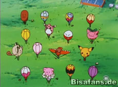 Doch der Wettbewerb startet anders als geplant. Sehr viele Ballons stürzen direkt nach dem Start ab. Unsere Freunde ahnen es schon, doch noch kann keiner beweisen, daß Team Rocket daran Schuld ist. So fliegen die verbliebenen Ballons, darunter Skyler sein Vater und Ibitak wie auch Ash, Misty und Rocko im Pikachu-Ballon weiter und lassen sich von Noctuh ziehen.