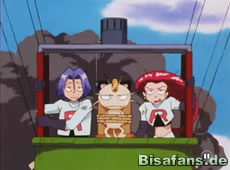 Als nun ein Sturm aufzieht bittet Mauzi den Ballon wieder übernehmen zu können, doch James bevorzugt hier einen geheimen Raketenantrieb im Ballon. Die Pikachu- und Ibitak-Ballons unserer Freunde haben es unterdessen schwerer. Vor allem als der Brenner vom Pikachu-Ballon ausgeht. Da setzt Ash sein Feurigel ein um die Luft im Ballon zu erhitzen, bevor sie abstürzen oder gegen einen der Felsen im Gebirge knallen.