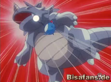 Wähernd Karnimani genüßlich Rückenschwimmen macht, taucht das Rizeros auf. Alle WasserPokémon umzingeln es, doch Rizeros ist schlau und setzt seinen Hornbohrer ein, der im Wasser zu einem gefährlichen Strudel wird.