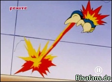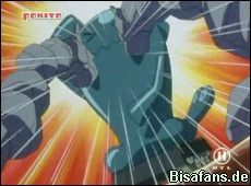 Bei den nächsten Eisenschweif-Attacken wird Feurigel weggeschleudert und geht fast K.O. Mit letzter Kraft kann Feurigel sich noch aufraffen und einem Knirscher von Stahlos ausweichen. Feurigel setzt nun erneut den Flammenwurf ein, der wieder vom Sandwirbel Stahllos' abgewehrt wird. Feurigel setzt jedoch seine Attacke diesmal fort bis sich der Sandwirbel so stark aufheizt, daß Stahlos K.O. geht!