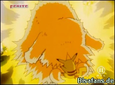 Nun legt Pikachu mit einem neuen Ruckzuckhieb los, der von Keifels Furienschlag gekontert wird. Nun stürmt Keifel mit einem Bodycheck auf Pikachu los. Im letzten Moment setzt Pikachu jedoch Donner ein, woraufhin der Boden einbricht und Keifel ins Wasser fällt. Die nun folgende Blitz-Attacke schwächt Keifel stark. Doch leider nicht stark genug, denn der folgende Furienschlag von Keifel setzt Pikachu mächtig zu. Nur mit viel Mühe kann Pikachu sich nun auf den Beinen halten.