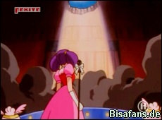 Natürlich kommt es nun wie es kommen mußte... Pummeluff schleicht sich am Ende der Show auf die Bühne und fängt an zu singen. Doch es kommt erneut anders als geplant als auch Team Rocket auftauchen und in einem Lied den Diebstahl von Pikachu ankündigen.