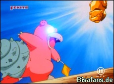 Kurz darauf beißt ein Muschas an Flegmons Schwanz. Wie Madeleine erklärt, verdankt Flegmon dies seinem harten Meditationstraining.