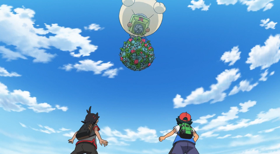 seinem Heißluftballon auftaucht und sie einzufangen beginnt. Pikachu hat aber keine Probleme, die Pokémon zu befreien, was Team Rocket dazu zwingt, zu landen. Ein Pelipper taucht unmittelbar danach auf und lässt eine Art Spielzeugautomat fallen, welche Team Rocket als