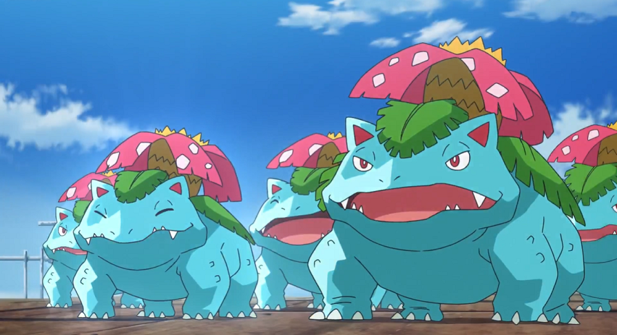 Die Bisaknosp beginnen nun, sich zu Bisaflor weiterzuentwickeln, was Ash und Goh mit großem Erstaunen beobachten. Mit Hilfe des Windes verteilen die Bisaflor besondere Pollen, die nicht nur zahlreiche Blumen in der Stadt zum Blühen bringen, sondern wodurch sich auch die Bisasam der Gruppe zu Bisaknosp weiterentwickeln können.