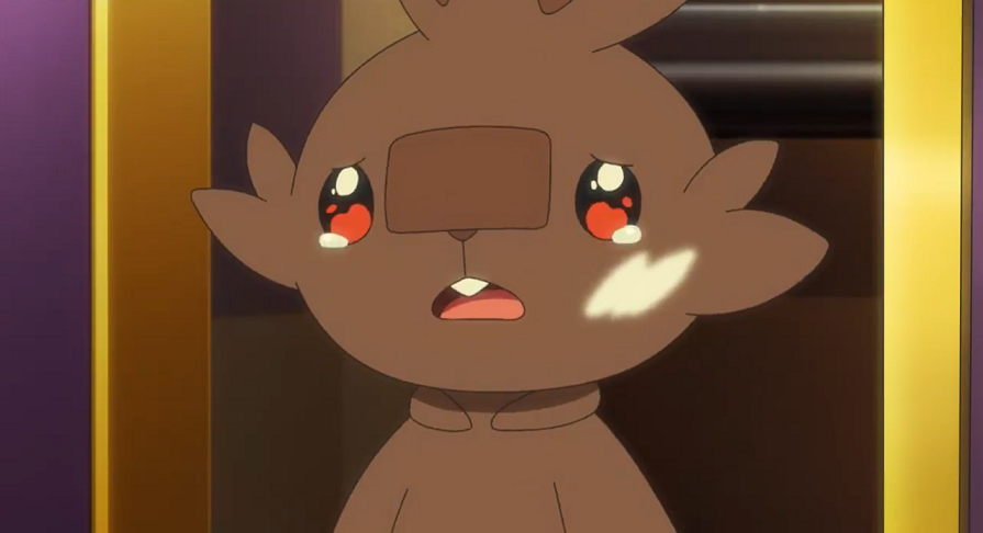 Enttäuscht über die Niederlage verpasst das Hasen-Pokémon Ash geschickt einen kräftigen Tritt in den Hintern, als dieser sich ihm nähern will. Goh ist begeistert von dem Kick, was das Pokémon sich stolz die Nase reiben lässt. Dabei kommt an einer kleinen Stelle sein eigentlich weißes Fell zum Vorschein. Gerade als Goh dies bemerkt, ertönen in der Ferne Rufe vom Besitzer des Scones-Imbiss, der von den Kleptifux beklaut wurde. Dieser kann die Pokémon aber in eine Sackgasse verfolgen und dort stellen. Das hinzugeeilte Hasen-Pokémon kommt zu spät und gerät so in die Fänge des Mannes. Goh, der mit Ash ebenfalls dazugestoßen ist, gibt sich als Trainer des Pokémon aus und entschuldigt sich für dessen Verhalten.