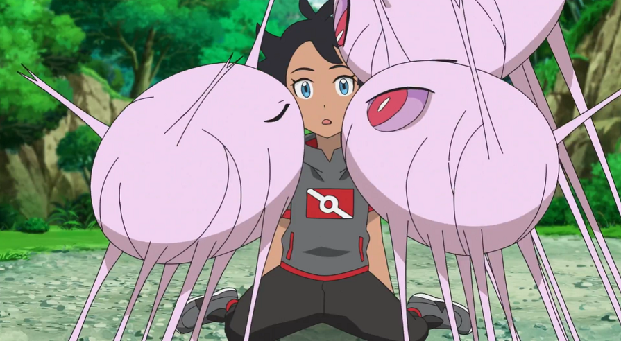 Als Chloe von der Schule zurückkehrt, eilt Voldi schnell in den Flur, um sie zu begrüßen. Dort taucht im selben Moment wieder das Gengar auf und attackiert Chloe mit einem Spukball, in den sich Voldi wirft, um sie zu beschützen. Chloe schnappt sich ihr verletztes Pokémon und will fliehen, das Gengar aber hindert sie daran, den Raum zu verlassen. Ash und Goh eilen ihr mit ihren Pokémon zur Hilfe und Pikachu kann Gengar von Chloe und Voldi kurz abbringen. Doch Gengars Konter lässt nicht lange auf sich warten: Mit seinen Kräften gelingt es ihm, Ash, Goh, Pikachu und Hopplo zu lähmen und in der Luft schweben zu lassen.