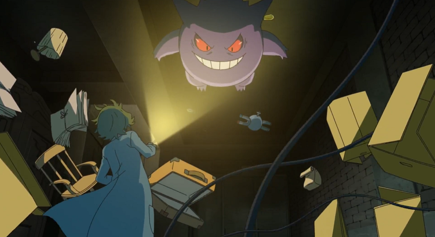 Im Labor sitzt René, der Assistent von Professor Sakurgi, während seiner Arbeit am PC auf einmal im Dunkeln. Um wieder für Strom zu sorgen, macht er sich auf den Weg in den Keller, wo sich der Sicherungskasten befindet. Dort angekommen, ruft er sein Magnetilo aus seinem Pokéball zur Hilfe, das für ihn den Sicherungskasten untersuchen soll. Plötzlich bemerkt er Geräusche hinter sich und als er sich umdreht, sieht, wie auf einmal sämtliche Gegenstände des Kellerraums in der Luft schweben und an der Decke ein Gengar auftaucht, das seine Kräfte gegen ihn und sein Magnetilo einsetzt.
