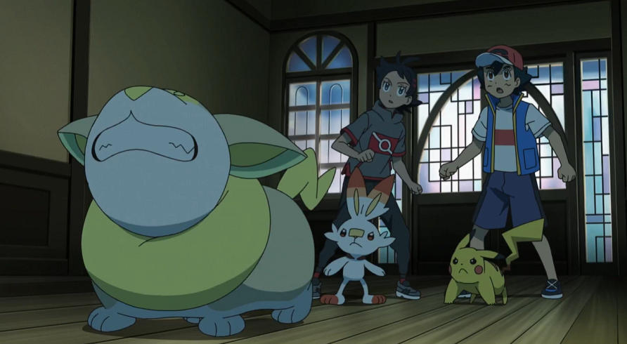 Ash und Goh, der fest entschlossen ist, das Gengar zu fangen, sind derweil mit ihren Pokémon im Laborgebäude auf der Suche nach dem Geist-Pokémon, das sich ihnen kurz darauf erneut zeigt. Goh versucht gleich sein Glück und wirft einen Pokéball auf Gengar, den dieses jedoch mühelos, wie auch etliche darauffolgende Fangversuche, abwehren kann.