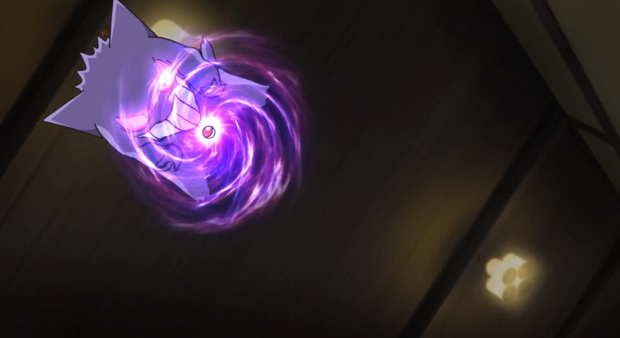 Dieser taucht einen Augenblick später im Flur auf, wo sich Ash, Goh, deren Pokémon Pikachu und Hopplo sowie Voldi aufhalten. Mit seinen Kräften versucht das Gengar, Chaos zu verursachen, doch Pikachu kann dessen Treiben mit einem mächtigen Donnerblitz stoppen, woraufhin das Gengar verschwindet.