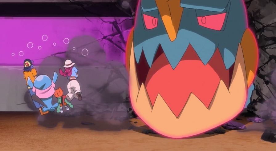 Ash und Goh, die die Szene auf der Tribüne beobachtet haben, machen sich direkt auf, um das Kamalm aufzuhalten.