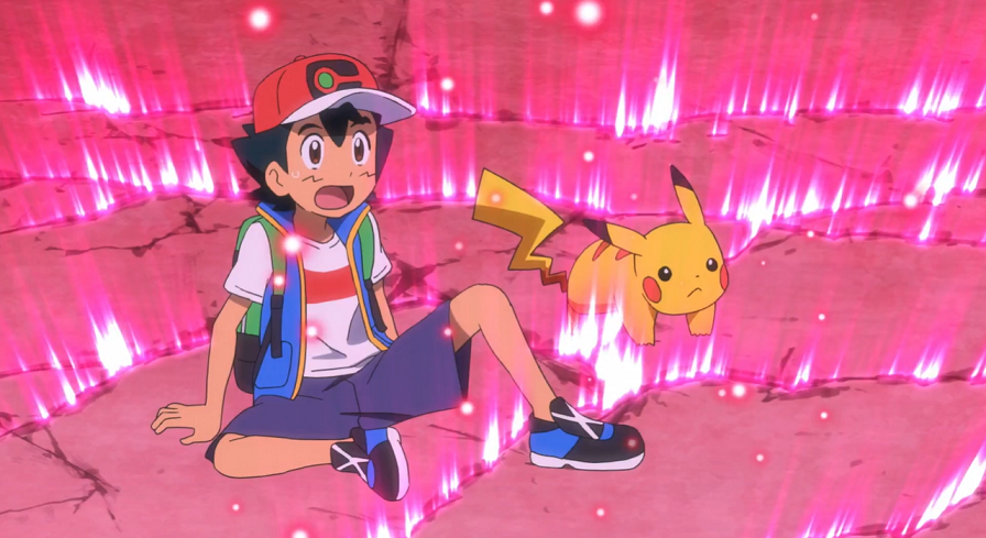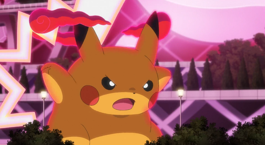Weder aber Pikachus Elektro-Attacke noch Hopplo mit einem Doppelkick können etwas gegen das Kamalm ausrichten, weshalb sie beschließen, die Flucht anzutreten. Überraschenderweise kann sich das Kamalm, das mit Hilfe seines langen Halses nach ihnen schnappt, nicht weiter strecken; Ash, Goh und ihre Pokémon können so in sicherer Entfernung kurz durchatmen. Plötzlich bemerken Ash und Pikachu Risse im Boden, durch die eine rötliche Farbe scheint. Dadurch gelingt es Pikachu, sich zu gigadynamaximieren. Schweren Schrittes, weil mit sichtlich ungewohnter Größe, macht sich Pikachu auf, um sich Kamalm entgegenzustellen. Mit einer Wasser-Attacke gelingt es diesem, Pikachu kurz zu stoppen und gegen die Fassade des immer noch nahezu vollen Stadions zu schleudern, welches durch den Aufprall spürbar erschüttert wird. Pikachu rafft sich schnell wieder auf und kann dem Kamalm mit seiner Eisenschweif-Attacke ordentlich schaden. Dabei wird es vom herbeigeeilten Delion beobachtet, der vor allem über die Tatsache erstaunt ist, dass Ash gar nicht das dafür erforderliche Dynamax-Band trägt.