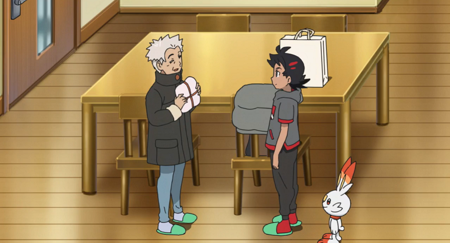 Goh berichtet seinen Eltern, dass er sich auf den Weg zu ihnen gemacht habe, um ihnen Eintopf vorbeizubringen. Zudem habe er eigentlich noch ein Geschenk vorbereitet gehabt, welches er nun allerdings nicht mehr finden könne. Ash, der Goh deshalb gefolgt ist, gibt seinem Freund zu dessen Überraschung das Geschenk, der es wiederum seinen Eltern überreicht. Diese freuen sich sehr über die zur Kälte passenden Handschuhe.