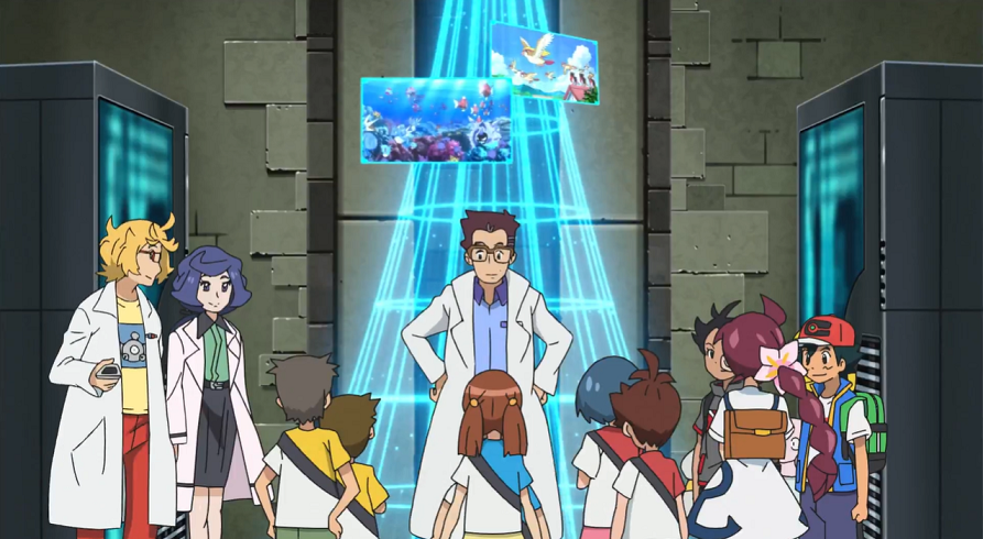Zusammen mit ebenfalls zwei Kindern und Voldi bildet Professor Kirsch die dritte Gruppe. Am Hafen warten sie bereits auf die Ankunft der Gruppen von Ash und Goh, die ihm auch seine Mitarbeiter im Labor, die alle Teilnehmer per GPS im Auge haben, ankündigen.
