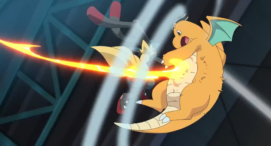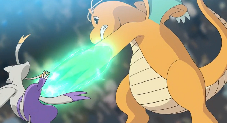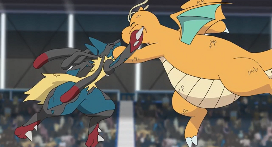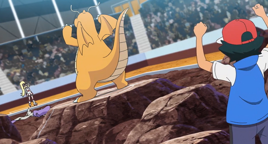 Lucario tritt nun wieder für Connie an. Diese löst auch gleich die Mega-Entwicklung von Lucario aus. Ash spricht seinem davon beeindruckten Dragoran Mut zu. Um sich weiter zu stärken, startet es einen erneuten Drachentanz. Mega-Lucario greift das in der Luft umherfliegende Dragoran mit seiner Aurasphäre-Attacke an. Schnell versucht Ash noch, Dragoran diese mit Hyperstrahl kontern zu lassen, was aber nicht mehr gelingt. Mega-Lucario will nun nachlegen und attackiert das getroffene Dragoran mit seinen Steigerungshieben und schickt es so in das Steinfeld. Dieses aber will sich noch lange nicht geschlagen geben. Um das nun noch weiter gestärkte Mega-Lucario zu besiegen, hat Ash einen Plan: Er lässt Dragoran Orkan einsetzen, womit Connies Pokémon schwer zu kämpfen hat. Durch den erneuten Einsatz von Aurasphäre kann es den Orkan aber beenden. Während Mega-Lucario nun noch einmal mit Steigerungshieb angreift, macht sich Dragoran daran, mit Drachenklaue zu attackieren. Beide Pokémon treffen das jeweils andere im selben Moment und kommen so zu Fall. Sowohl Dragoran als auch Mega-Lucario kommen nochmals auf die Beine, doch Connies Pokémon ist nach kurzem Zittern für beide Trainer das erste, das zusammenbricht. Somit werden Ash und Dragoran zum Sieger des Kampfes erklärt, worüber sich die beiden sehr freuen.