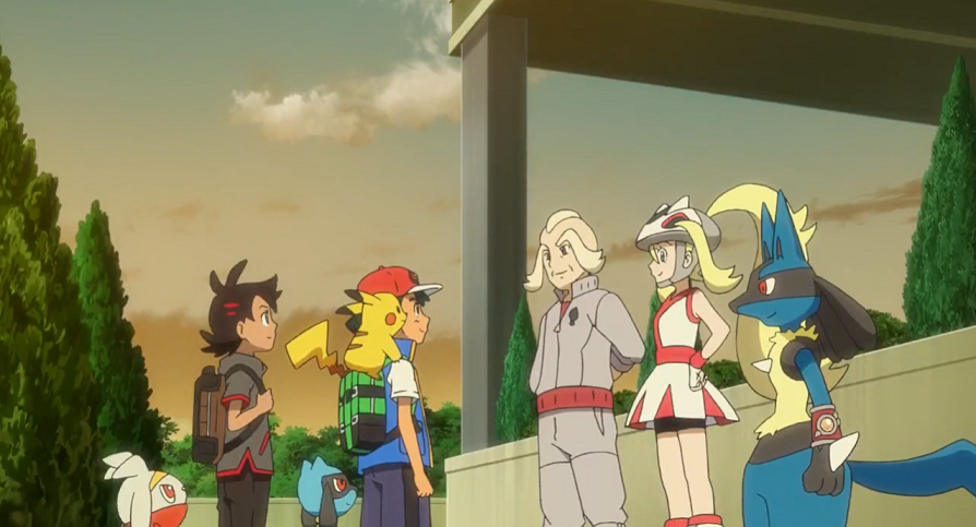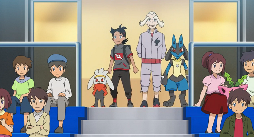 Goh ist mit seinem Kickerlo in einem Wald nahe des Stadions, wo er Ausschau nach weiteren Pokémon hält, nachdem es ihm gelungen ist, auch das Rotblütler-Flabébé sowie noch ein Orangeblütler-Flabébé zu fangen. Plötzlich entdeckt Kickerlo ein aus dem Gebüsch auftauchendes Lucario. Als Go gleich darauf reflexartig ansetzt, um dieses zu fangen, taucht dessen Trainer Combre auf, bei dem es sich um Connies Großvater handelt. Goh berichtet ihm von seinem Ziel, möglichst viele Pokémon in der Kalos-Region zu fangen. Vor allem fehle ihm nur noch ein Weißblütler-Flabébé. Combre erzählt, dass er unterwegs sei, um die Kämpfe seiner Enkelin zu verfolgen. Dabei kommen die beiden auch auf Ash zu sprechen, den Combre ebenfalls durch seine Enkelin kennt.