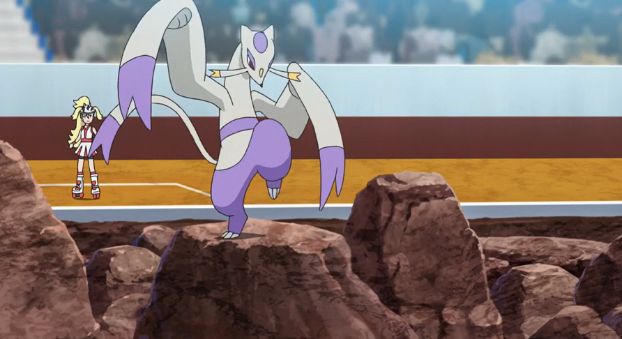 In der Arena beginnen Ash und Connie ihren Kampf auf einem Kampffeld mit Gesteinsuntergrund. Beide dürfen zwei Pokémon einsetzen. Verfolgt werden wird der Kampf auch von Goh sowie Combre, die inzwischen im Stadion angekommen sind. Connie beginnt den Kampf mit Wie-Shu, während Ash sich für Gengar entscheidet.